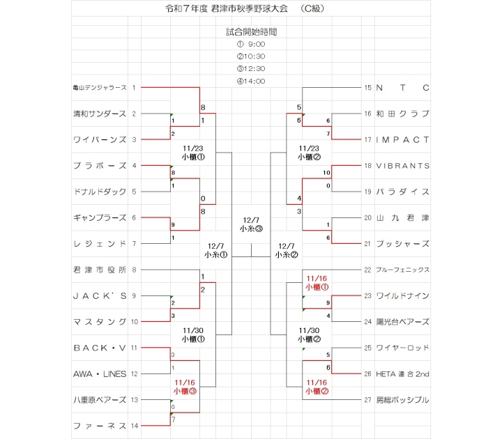 11月2日・9日は球場の手配ができず、やむを得ず休止します。