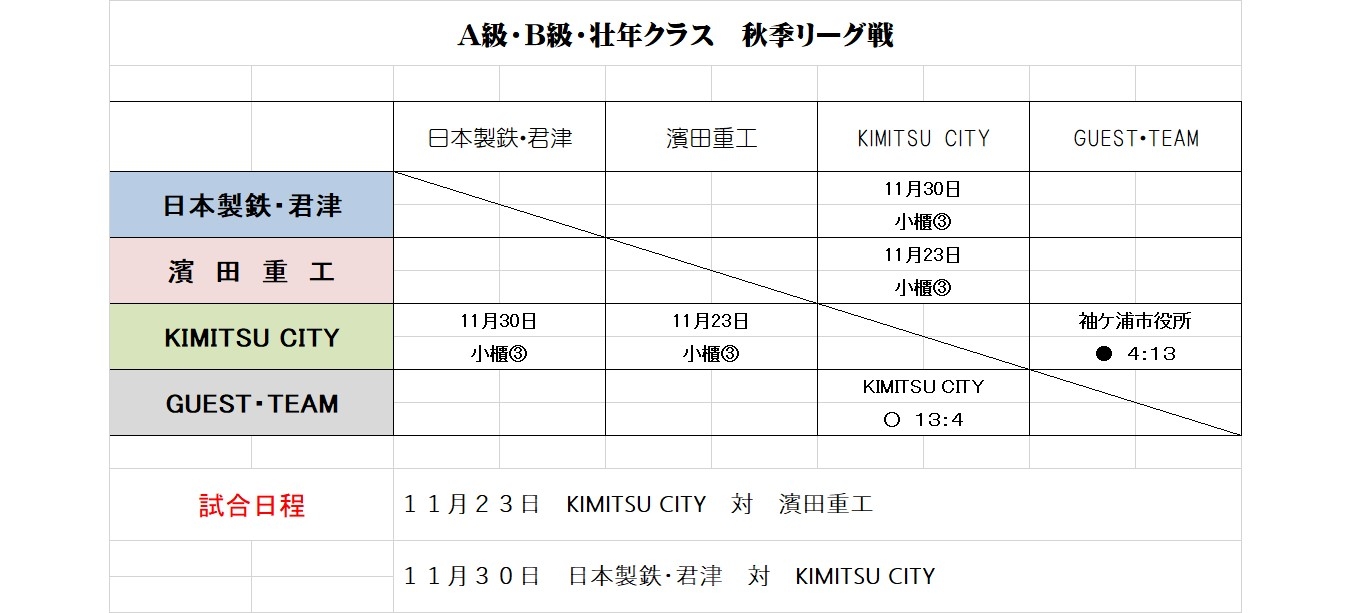11月23日 小櫃球場 第3試合 KIMITSU CITY 対 濱田重工